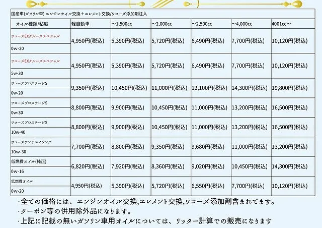 お安いですが、ガソリンスタンドやカー用品店の一番安いエンジンオイルより上質なオイルになってます。