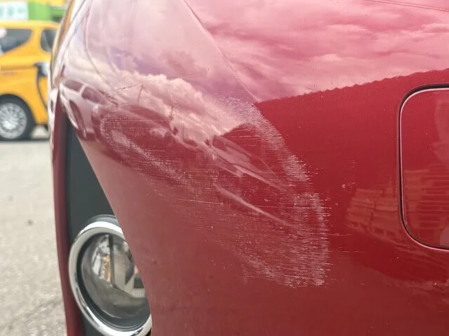 駐車場に停車中にフロント右側をぶつけられたそうです。S様は、こちらのお車を購入して半年ほどしか経過していなかったそうです。
