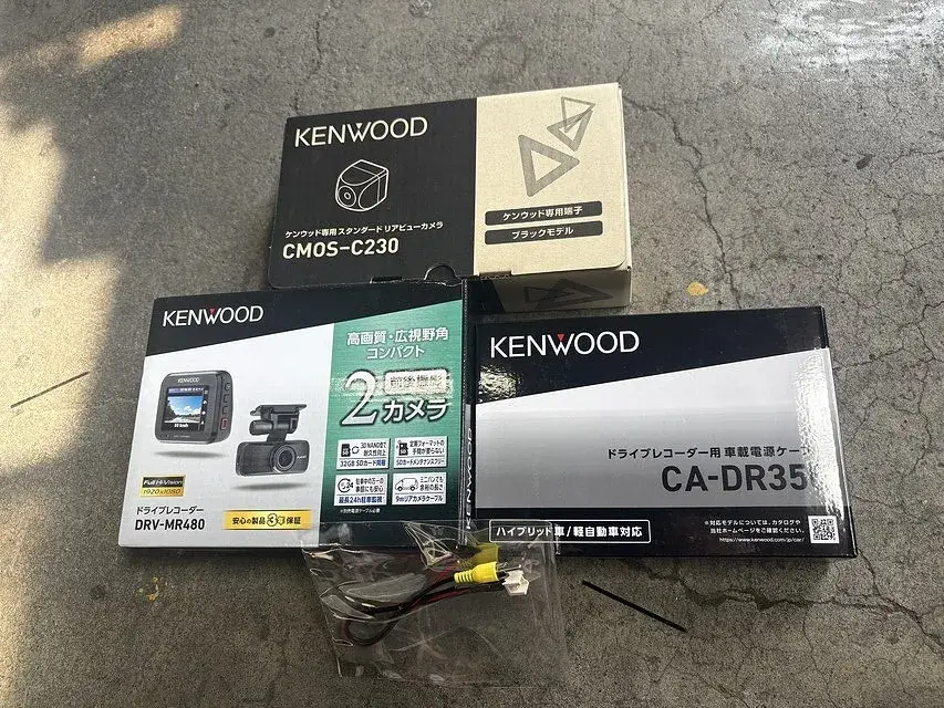 『ケンウッド 2カメラドラレコレコーダーDRV-MR480』と『ケンウッド CA-DR350』と『ケンウッド専用スタンダードリアビューカメラ』です