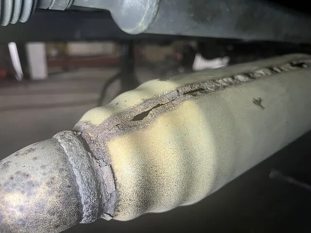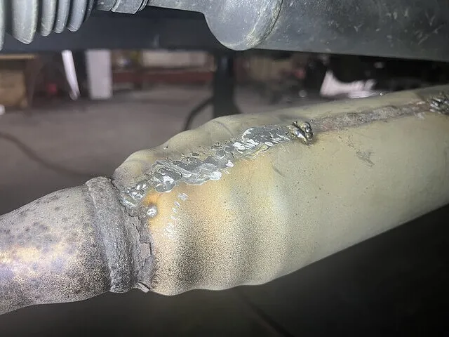 触媒側のボルトがサビが酷く折れてしまう危険があったため、半分外しでの溶接を決行‼